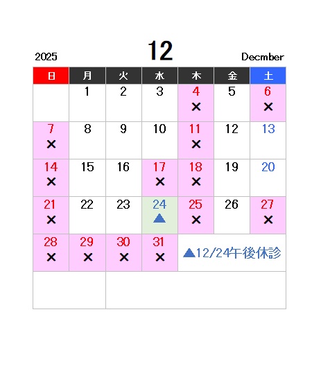 ※毎月、第四水曜日もしくは第五水曜日午後はスタッフ研修のため休診となります。