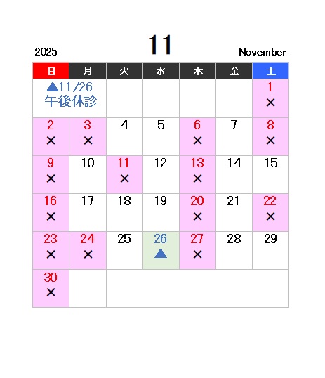 ※土曜日の診療は月に2回となっておりますので、日程をご確認の上ご来院ください。